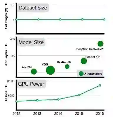 过去十年中,在计算机视觉领域,虽然计算力(GPU)和模型大小不断增长,数据集的规模一直停步不前。