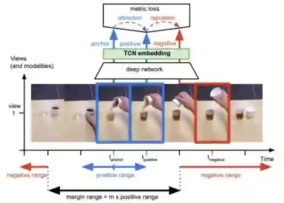 由于上面实验有对比TCN的结果,这里简单介绍下,都是同一个组的工作。主要思想在temporal上构造三元组,离anchor近的当成positive,离anchor远的当成negative。通过这个self-supervised learning,模型能学到强时间上下文的表达,尽管在空间上这些帧都是similar-looking images。