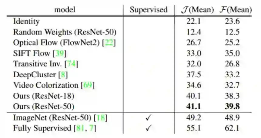《Learning Correspondence from the Cycle-consistency of Time》[3],出自CMU的Xiaolong等。对于一个视频内时间上下文的mid-level特征一致性来做patch matching,self-supervised 地学习单帧的embedding features。