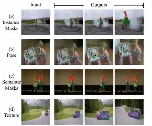 文中具体的应用如上图所示,在特定帧标定好target后(这里的target可以是mask, pose, texture 等等),在视频的后续帧进行propogation。