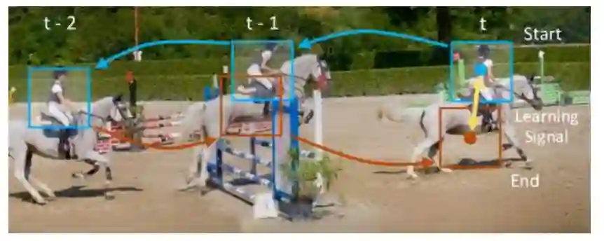 该文主要致力于统一光流和跟踪,通过自学习时空上的corresponding来得更好的embedding表征。如下图所示,主要贡献点有:1)构造了从t-->t-1-->t-2-->t-1-->t的time cycle,在不要手工标注label情况下,通过cycle前后的信息差异,来引导模型学习 ;2)对于上下文tracking,如t-->t-1,构造了可微分的tracking operation,使得网络能进行端到端地训练。