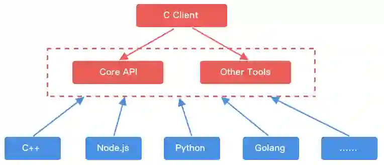 随着业务的不断发展,很多产品和应用需要使用不同的语言,CAT 多语言客户端需求日益增多,除 Java 客户端外,目前提供了 C/C++、Python、Node.js、Golang 客户端,基本覆盖了主流的开发语言。对于多语言客户端,核心设计目标是利用 C 客户端提供核心 API 接口作为底层基石,封装其他语言 SDK。
