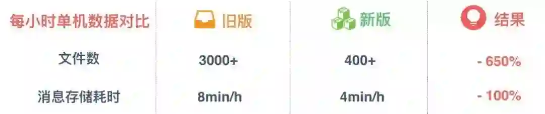 新版消息文件存储文件节点数与应用数量成正比,有效减少随机 IO,消息实时存储的性能提升显著。以下为美团点评内部 CAT 线上环境单机消息存储的数据对比:
