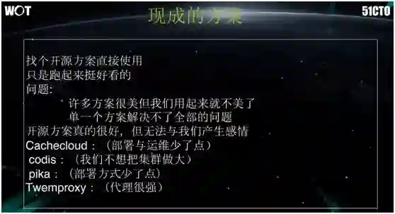 另外,其他需要应对的方面还包括:应用对缓存大小的需求就像贪吃蛇一般,一堆孤岛般的单机服务器,缓存服务运维则像一个迷宫。
