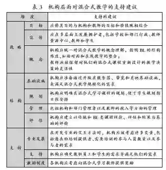 现阶段,国内外越来越多的高等教育机构认为,有必要从战略层面支持混合式学习,相关的政策应该向“混合式学习”倾斜。机构层面对混合式教学的战略支持,不仅能够帮助学生提高学习成效,还能够帮助机构实现增加资源获取渠道,具有保证教学灵活性和提高成本效益等优势。为此,机构必须提供必要的政策、规划、资源、课程计划等支持,以确保混合式学习能够取得成功。