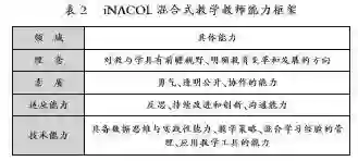 King等人构建了混合式教学的教师能力框架,提出了“课程准备、课程设计、交流讨论、动机激发”四个方面的能力要求[31]。相较而言,iNACOL的能力框架更全面、更概括;而King等人所提出的能力框架则更关注于策略层面,更具有可操作性和指导性。