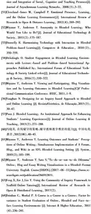 一些研究者尝试应用不同的概念框架,从不同的角度对混合式教学进行评价,例如:课堂社区意识[66-67]学生参与度与交互[68]、基于问题的学习框架[69]、活动理论[70]等等。
