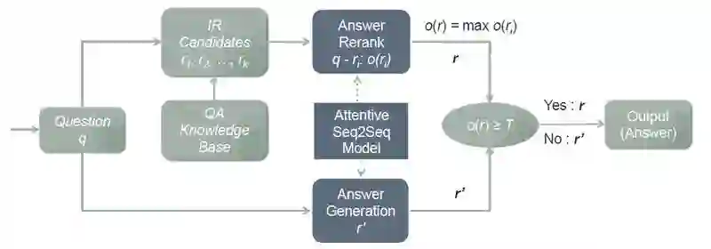 但是已有的系统面临的问题是,对于一些长问句或复杂问句往往无法在 QA 知识库中检索到匹配的条目,并且生成模块也经常生成不匹配或无意义的答案。