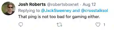 今年3月,SpaceX 公司 CEO 马斯克就公开表示: 「我们的目标是网络延迟低于20毫秒,这样用户就可以用我们的网玩视频游戏了,而且打游戏水平不会受到影响」。看来这个目标已经接近实现了!