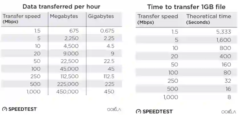 根据Speedtest网站传输数据的标准来看,如果传输速度为50Mdps,传输1GB大文件大概需要约160秒(2分40秒)。由上面的测试看,如果用星链的网(最高可达60.24Mbps)来传输1GB的文件大概会花2分多钟。