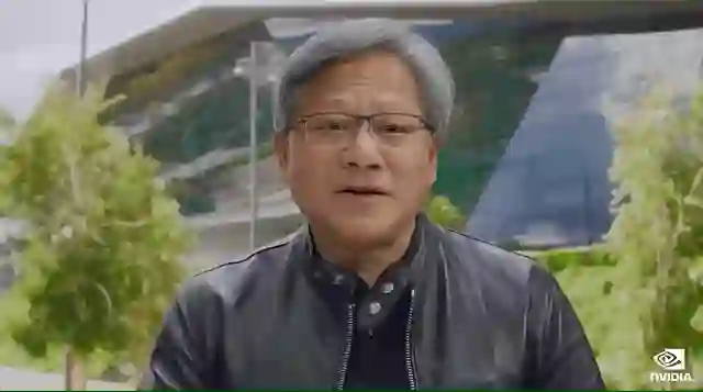 黄仁勋背后的树叶被风吹的左右飘摇,但他本人的头发丝依旧纹丝不动。