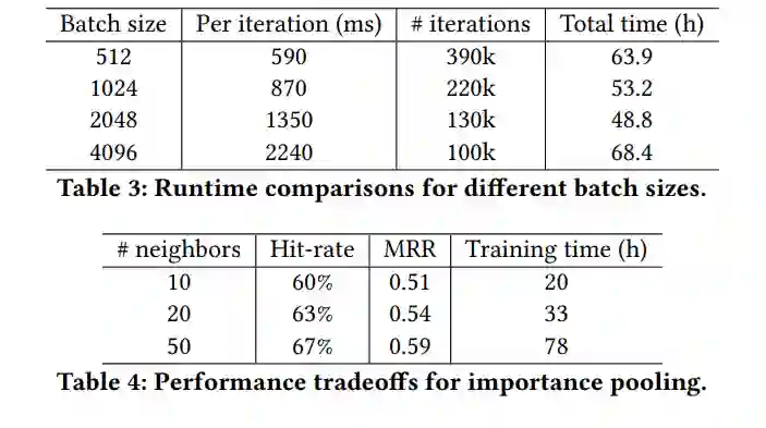 文中实验部分使用了12亿对正样本(每个batch有500个负样本和每个pin有6个hard负样本)。使用70%的标记样本(包含20%的board(以及这些board有关的所有的pins))作为训练集,10%的标记样本在调整超参数时使用,20%用于离线测试。