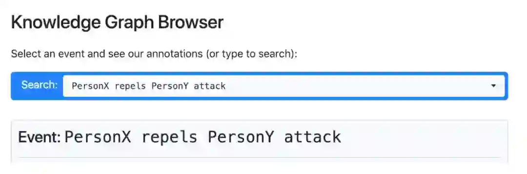 在官网上,研究者给出了一个关于该项目的知识图谱浏览器,可以选择一个事件并查看相关注释。