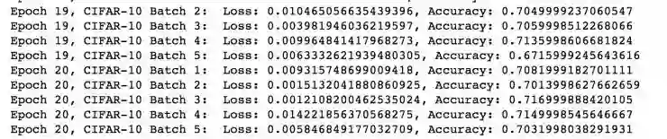 至此,我们实现了两种图像分类的算法。第一种是 KNN,它的思想非常好理解,但缺点在于计算量都集中在测试阶段,训练阶段的计算量几乎为 0,另外,它的准确性也非常差。第二种我们利用 CNN 实现了分类,最终的测试结果大约在 70% 左右,相比 KNN 的 30% 准确率,它的分类效果表现的相当好。当然,如果想要继续提升模型的准确率,就需要采用其他的一些手段,如果感兴趣的小伙伴可以去看一下相关链接(http://rodrigob.github.io/are_we_there_yet/build/classification_datasets_results.html#43494641522d3130) 里的技巧,Kaggle 上的第一名准确率已经超过了 95%。