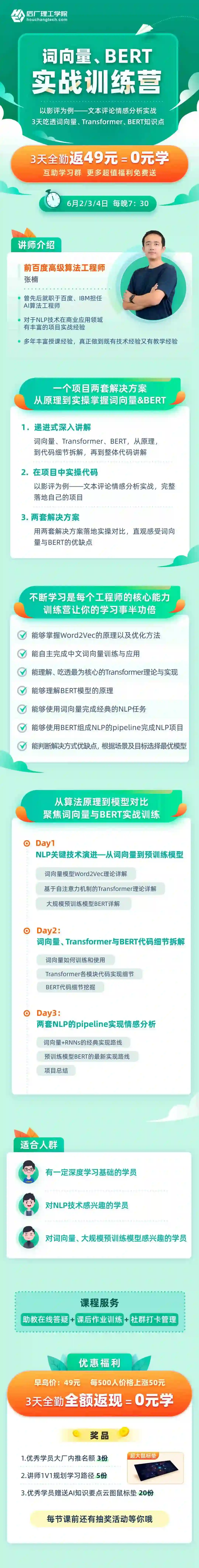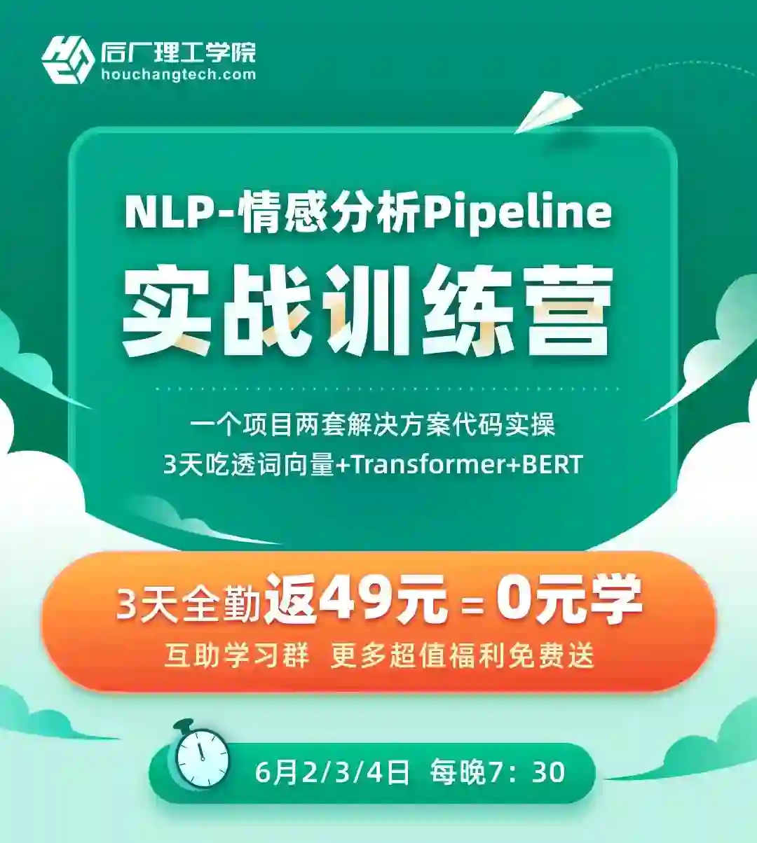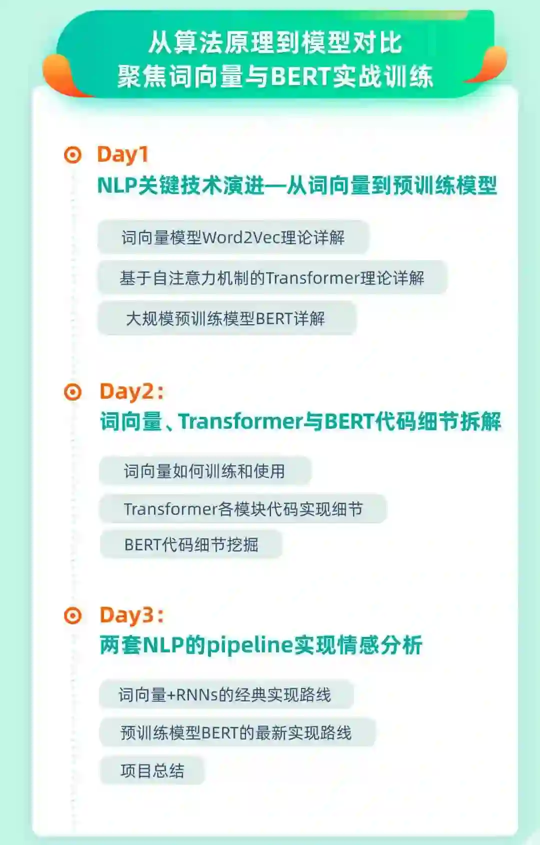 为期 3 天的《NLP-情感分析Pipeline实战训练营》,带你3天吃透词向量+Transformer+BERT。