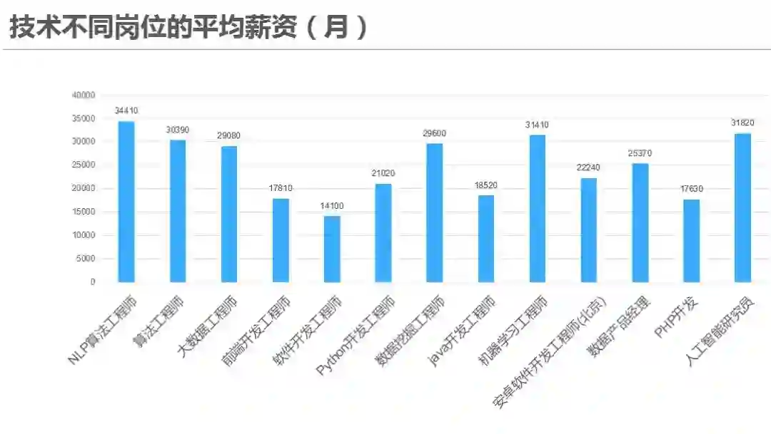 NLP算法工程师更是以平均月薪34410元高居榜首