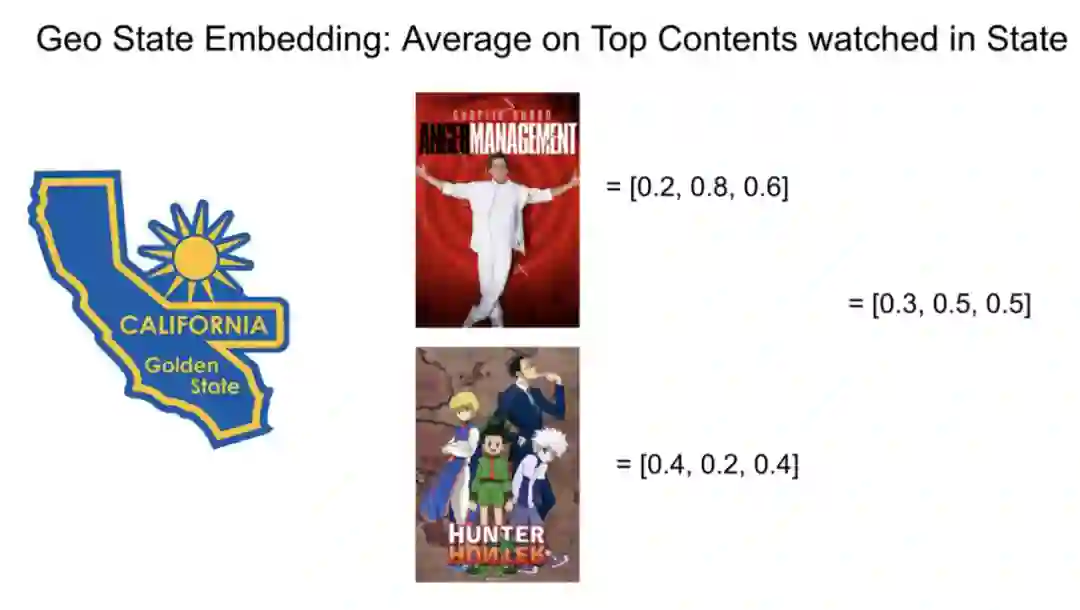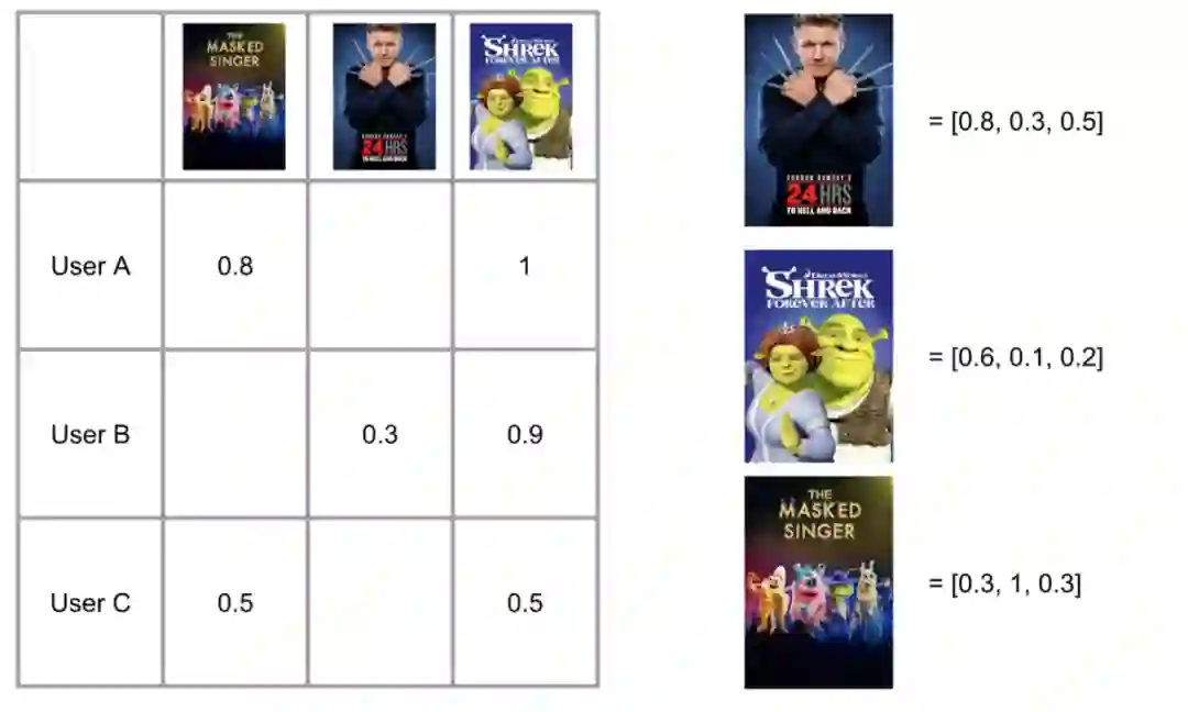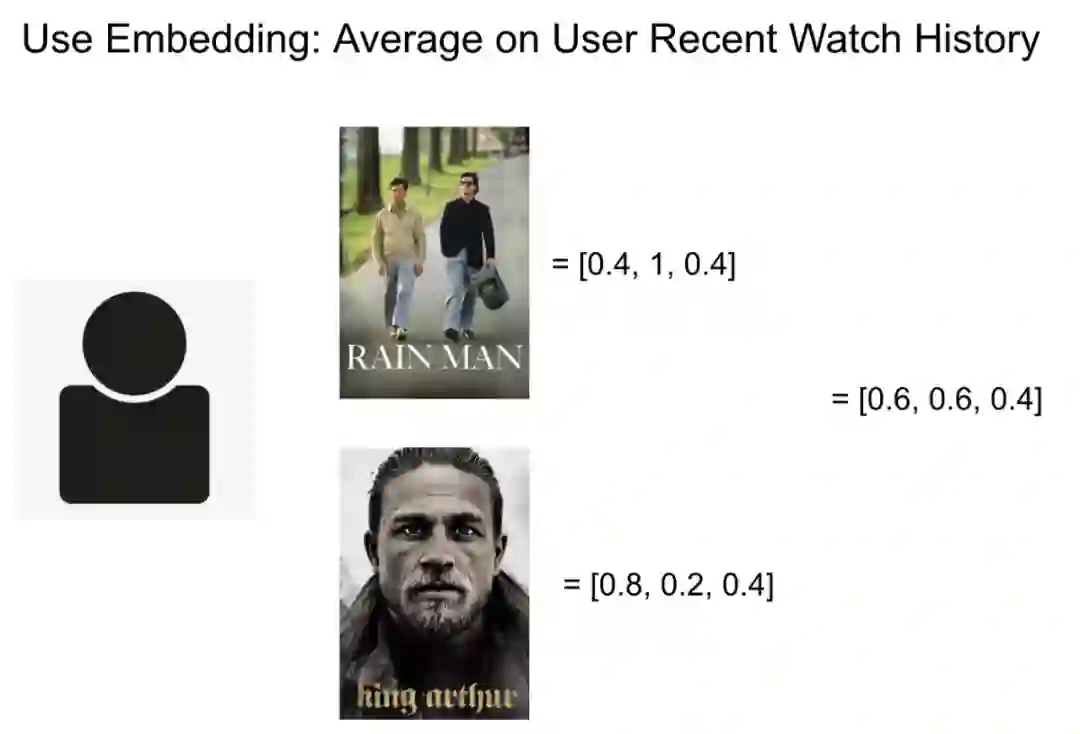 通过这种方法,我们可以为各种其他的对象生成 embedding,比如用户、平台、邮政编码、电影种类之类的。一旦各种对象都有了 embedding,我们便可以计算余弦相似度了。有了这个相似度,我们便可以计算各类排序问题,比如:用户最喜欢观看的视频、平台、地理位置,或者最相似的城市、平台之类的。
