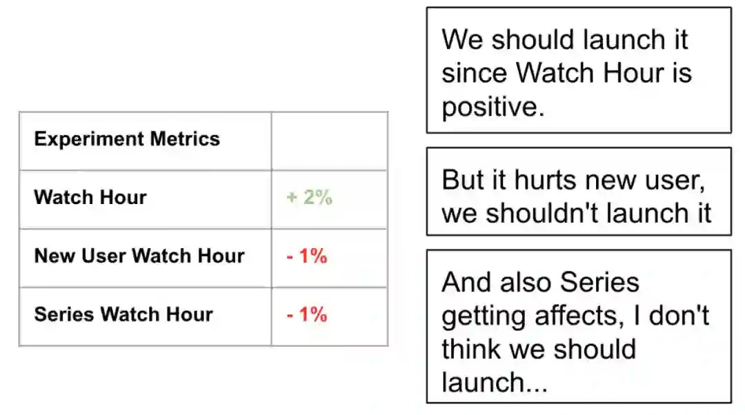 这是一个很糟糕的想法。如果一直这么做,那总会遇到很多实验部分指标为正,部分指标为负。这种情况下,不同团队的人就会为这些指标争论不休,无法上线。这样的情况有违 A/B 测试的初衷:实验带来更好的决策。