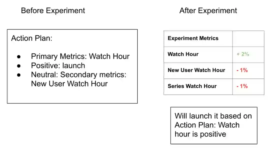 通过这种方法,我们在实验前就能明确目标。一定上线计划确定,大家不会在实验之后争吵是否应该上线。