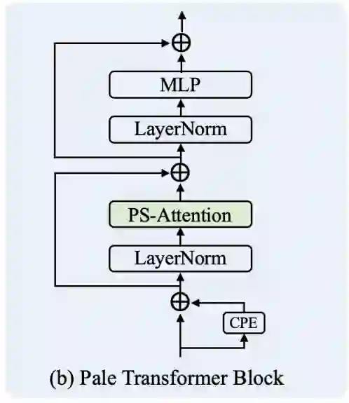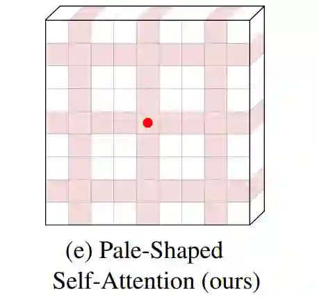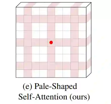 为了解决这个问题,本文提出了一种Pale-Shaped self-Attention(PS-Attention),它在一个Pale-Shaped的区域内进行自注意力的计算。与全局自注意力相比,PS-Attention能显著减少计算量和内存开销。同时,利用已有的局部自注意力机制,可以在相似的计算复杂度下获取更丰富的上下文信息。
