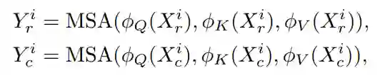 具体而言,如图2(c),首先将输入特征 划分为两个独立的部分 和 ,然后将其分为多个组,以便分别按行和列进行注意力计算。