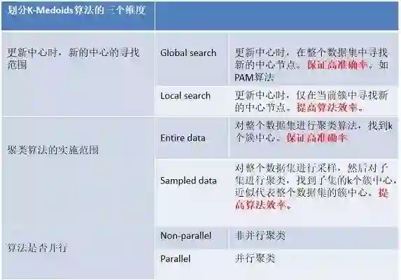 解决k-medoids算法效率问题的各种举措可以按照以下三个维度进行划分