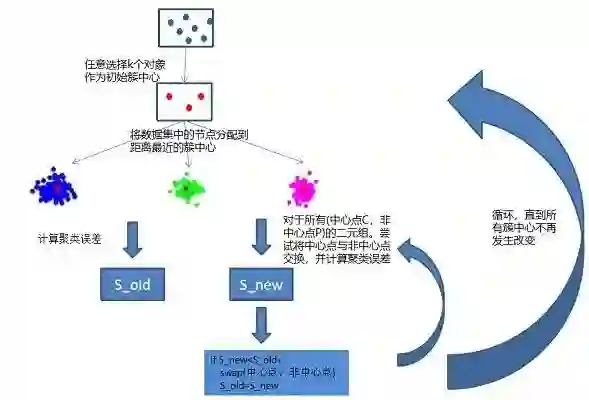 聚类就是将数据集划分为多个簇(cluster),每个簇由若干相似对象组成,使得同一个簇中对象间的相似度最大化,不同簇中对象间的相似度最小化。其中k-means与k-medoids是最基础的两种聚类算法