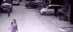 而此时远处一辆车开过来,女人抱着孩子就上车了,其他人继续控制着爸爸。