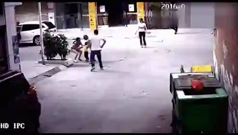 有一位爸爸牵着孩子遛弯,这时一个穿短裤的女人从身后冲过来,喊着:“人贩子!”然后试图去抱孩子,爸爸立刻搂住孩子阻止女人的行动。