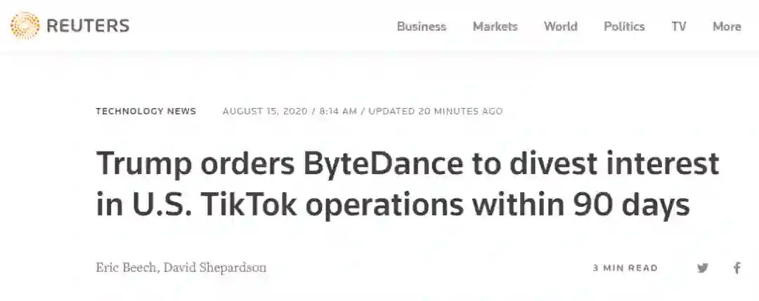 从另一个方面讲,张一鸣在继续推进收购上将难上加难,如果不能在时间限制内获得出口限制的相关许可,会导致TikTok身价大跌。从最开始盛传的500亿美元,到后来的200亿到300亿美元之间,还会持续下跌也未可知。