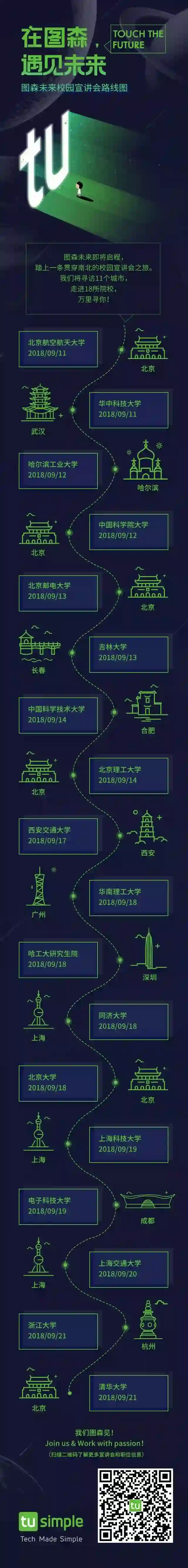 最近被无数次追问线下宣讲会的行程安排,现在终于可以大声宣布——图森未来2019 校园宣讲会正式启程!