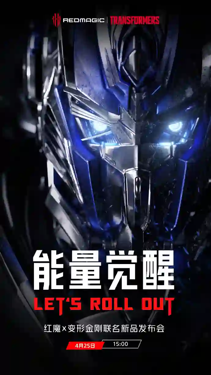 今日,红魔游戏手机官方微博正式官宣与《变形金刚》联名,新品发布会将于 4 月 25 日下午 15:00 正式举行,Slogan 为“能量觉醒,Let's Roll Out!”。这款即将发布的联名新机是红魔对于品牌四周年的献礼,有可能是为前不久发布的红魔游戏手机 7 系列推出的散热、保护壳、耳机等周边产品。
