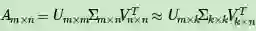 SVD也是对矩阵进行分解,但和特征分解不同,SVD并不要求要分解的矩阵为方阵。假设矩阵A是一个m×n的矩阵,那么我们定义矩阵A的SVD为: