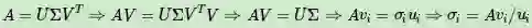 U和V求出来后,现在剩下奇异值矩阵Σ没有求出。由于Σ除了对角线上是奇异值其他位置都是0,那我们只需要求出每个奇异值σ就可以了。注意到: