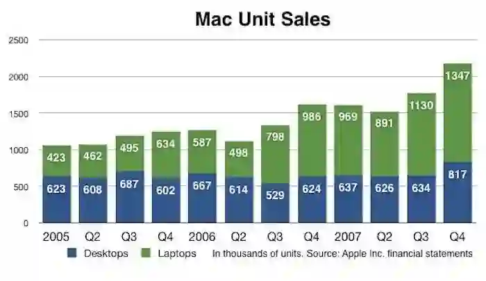市场份额的变动也体现了这一系列广告的渗透力。根据统计数据显示,在《Get a Mac》广告上线第一个月后,苹果的 Mac 电脑销售量上涨了 20 万台;到了 2006 年第四季度,苹果的 Mac 销量已经获得同比 39% 的增长。