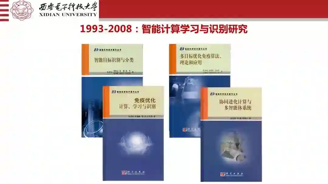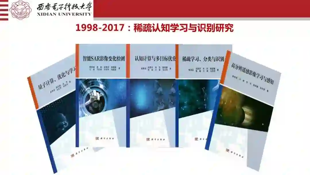 我们一直不说,但是路一直在走。简单的数据到了具体的对象,到了图像,从小波变换到了小波网络,从伸缩平移到了方向,到了图像旋转变换。所以说包括从地上到了天上,到了空中机载的。对象在变,需求在变,神经网络也好,机器学习也好,方法也在不断的往前走。所以我们是把这个结合起来在走。刚才为什么说我希望讲一下这些道理,因为进化计算的第一篇文章,不叫人工智能,是优化和学习在走,包括免疫的学习优化,包括我们用到多目标上面去做,包括做协同的、量子的,而且用到了真正目标的识别上,我们都做了。这个过程我们回过头来说,对于人工智能人才的培养,为什么我们心里面不太慌,经过了十四五年的实践和培养,反正我们也出了这些书,不敢说水平有多高,但是研究生,本科的教材是有参考的,我自己写的,我也在不断的更新。我们几十本书,应了人才培养教材之需,去年就包括做量子的,光学的,红外的,包括到认知的,稀疏的,一直到高分辨遥感,老先生一定要改成雷达图像,我们一路走过来,今年完成的是量子计算,计算智能,简明人工智能等七八本,大概也有好几十万字。计算智能还有模式识别,反正都是在50、60万字以上,还有自然计算的前沿,就是相当于深度学习的前沿,还有一个大数据智能挖掘的。