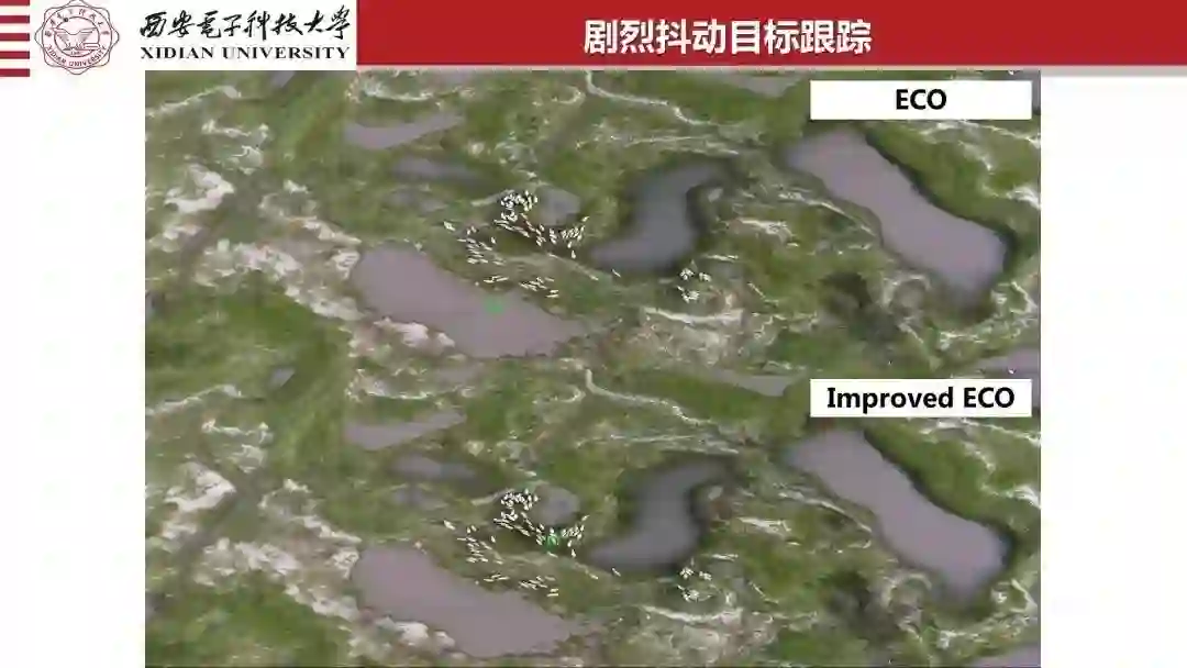给大家看一下。ECCV的无人机的竞赛的数据。全部数据主办方给的,他们飞的。这个数据看那个羊在哪里?所有的羊都是一样的。这个是所有的车,遮挡的情况下,无处可逃。这算法全是拿主办方的数据,在他们的机子上运行的。这是多目标的,你有多少目标,多少数据,都可以检测跟踪。我们的无人机,给大家看我们飞的视频。这个是西安南二环实况,检测、跟踪、分类全部是实时的,还能把几何参数找出来。包括人,包括三轮车,所有的分类检测跟踪,有多少给多少,遮挡也能捣腾出来。这是我们学生做的,他们现在做得很起劲的。