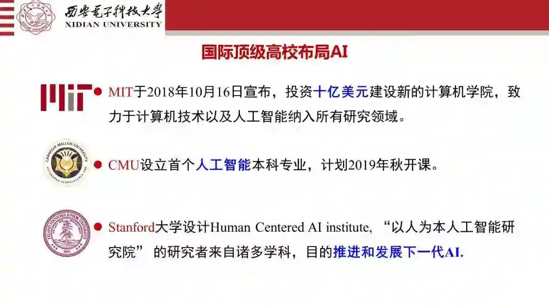 所以说到对人工智能的战略投资,包括对社会的变革、长期的革命,MIT这件事情拿了10亿美金,CMU创办了世界上第一个人工智能本科专业,我知道在纽约办了一个艺术学院与人工智能的结合,他们用6.4亿美金,专门办了一个艺术学院。我们不能只知道人家做了这件事,更要看这件事的内容是什么,要眼光面向全世界,要看清楚怎么去做,我们要去引领。我就觉得这三件事情都是今年的,都是刚刚发生的事,所以这件事情上,我觉得美国还是清醒的,站在这个制高点,不能说我们人工智能计划已经很完美。当然国内的布局也很快,这件事情应该说叫做“顺势而为,趁势而上”,但我们千万不要说吃了一碗面条,我们脑子就很聪明,好像不是那么回事,要懂得做全局优化。