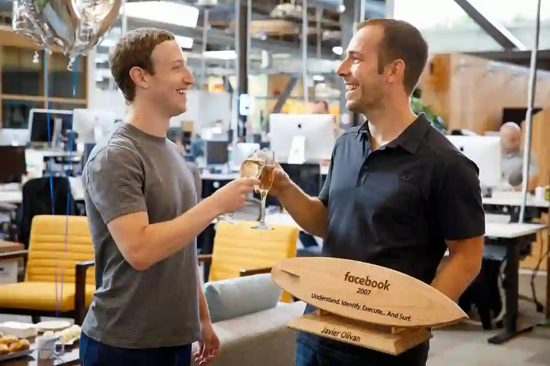 图 | 扎克伯格和增长副总裁 Javi Olivan 在 Olivan 入职十周年纪念会上