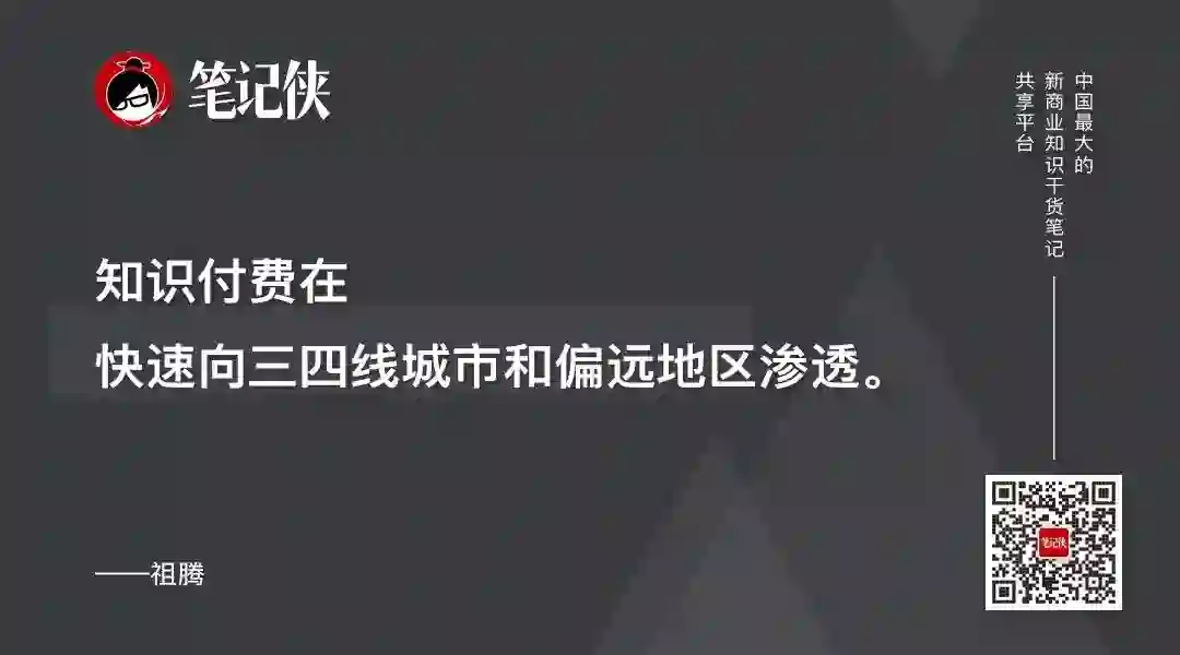知识付费市场面对的核心消费人群是1.5亿的白领网民人群。而且不光是一二线大城市,知识付费也在快速向三四线城市和偏远地区渗透。