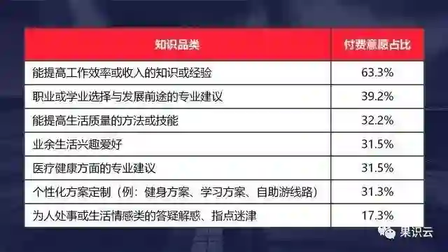 消费者买的并不是内容或内容载体(音频、视频、直播、图文),而是预期的结果,预期的结果是通过服务承载的,所以本质上消费者是为知识服务付费的。