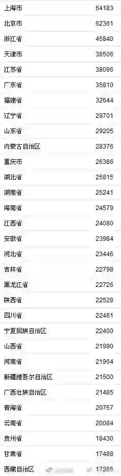 【2018年31省居民收入榜,京沪人均可支配收入首超6万元】
