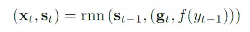 注意序列对序列模型是一个单向递归网络。它对T步迭代工作,产生长度为T的符号序列,表示为(y1,...,yT)。