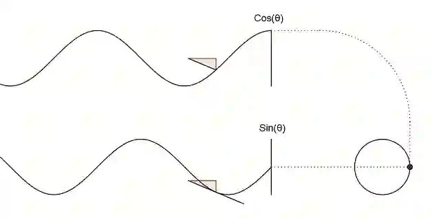来表示这个正弦函数,而 则表示某一弧度,如果你把这个三角形画在一个二维坐标系的圆上面,比如下面的这种形式