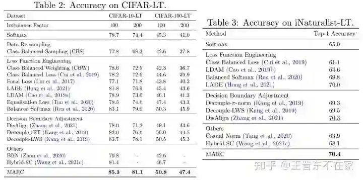 实验表格如下。我们在众多被广泛使用的长尾分类图像数据集中进行了对比。从实验结果可以看出MARC相比于其他方法取得了良好的性能,并且MARC十分容易实现。