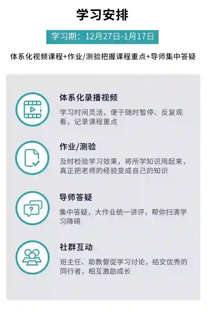 课程购买后1年内可不限次回放,报名后未在集中学习期内完成学习,仍可继续观看视频