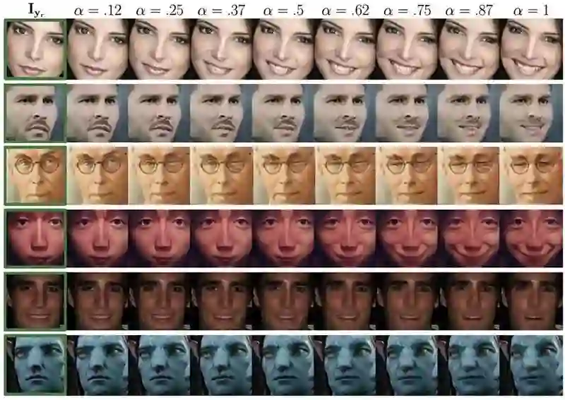 为了在不断变化的背景和光照条件下处理图像,该模型包括一个注意力层,该注意力层只将网络的动作集中在图像中与表达新表情相关的区域。