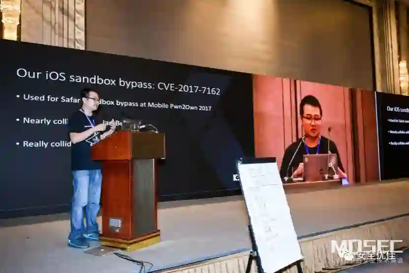 来自360Vulcan的古师父和大宝在MOSEC上分享了他们的最新研究成果,实现了iOS remote JailBreak,并在现场演示了demo。