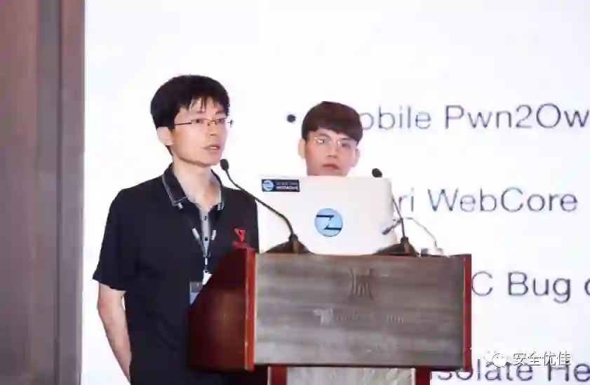 来自@360Vulcan 的安全研究员古河、招啟汛分享了议题《手机浏览器中的远程代码执行 - Mobile Pwn2Own实例分享》。该议题主要介绍了在2017年Mobile Pwn2Own比赛中利用的浏览器漏洞,包括Safari DOM漏洞,Safari JIT漏洞等。除了漏洞利用技巧本身,还详细介绍了Safari和Chrome JIT漏洞的挖掘思路及调试方法。此外,此次MOSEC,360Vulcan Team准备了一个彩蛋,在MOSEC现场演示了iOS REMOTE Jailbreak demo,实现了iOS 11.4正式版及iOS 12.0 beta版本的越狱。