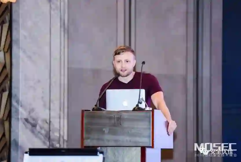 有12年的从业经验的Xerub在MOSEC分享了议题《回顾苹果的iBoot》。iboot的漏洞很少人提及,这种漏洞实在太过宝贵,Xerub从iboot在安全启动的地位说起,dump iboot,分析,找洞。由于攻击面比较少,Xerub更改了HFS+文件系统,加入类似特长路径,引发超长递归,导致iboot发生栈溢出。由于没有aslr dep的保护,很容易构造代码执行。iboot的代码执行就厉害了,类似android的bootloader解锁,可以加载任意内核,获取秘钥等。为了调试iboot,Xerub还特意写了iloader用来模拟执行iboot,据说会在xerub.github.io放出来。